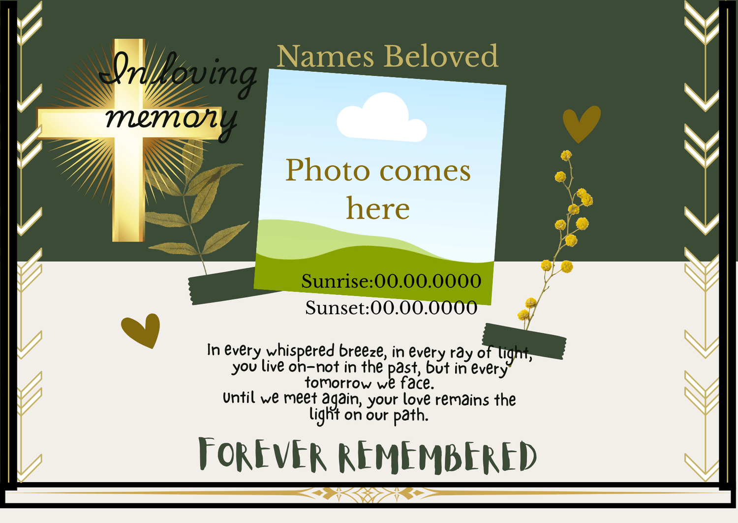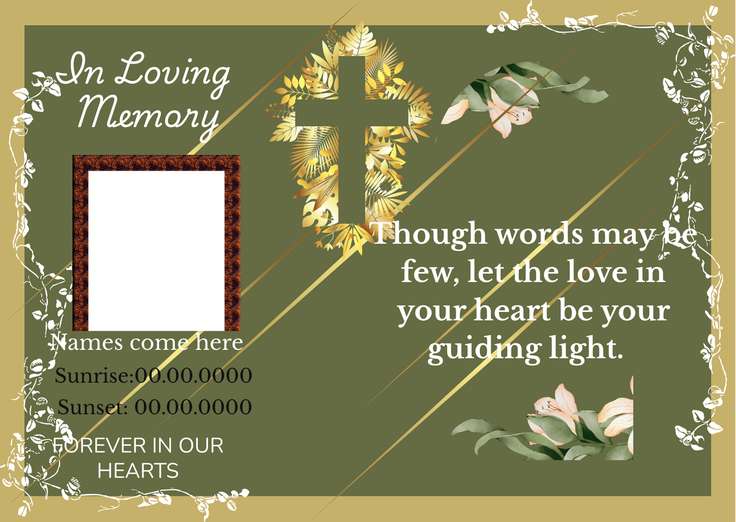 Honor the memory of your loved ones with thoughtful, customizable memorial cards. Designed to bring comfort and celebrate a life well lived.