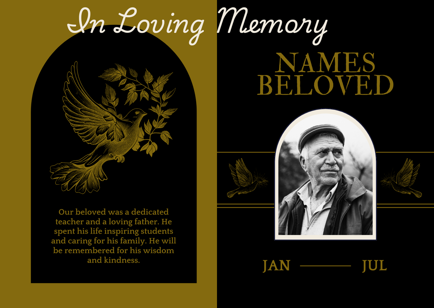 Our editable memorial templates help you create beautiful keepsakes to celebrate life, love, and memories.